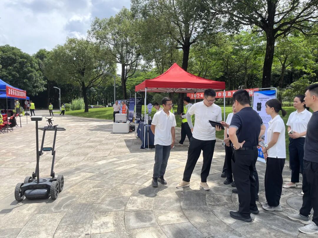 為進(jìn)一步提高深圳市測繪應(yīng)急保障能力和水平,2024年6月17日上午,深圳市測繪應(yīng)急保障工作領(lǐng)導(dǎo)小組和工作機(jī)構(gòu)在光明新城公園,舉辦深圳市應(yīng)急測繪現(xiàn)場演練。深圳市鵬錦科技有限公司攜大疆機(jī)場2、M350RTK+L2激光雷達(dá)、M3E無人機(jī)、PJC18智能管線探測儀、GS8000地質(zhì)雷達(dá)、GoSLAM掃描儀SHARESLAMS10實(shí)景三維激光掃描儀等測繪應(yīng)急保障產(chǎn)品參加了演練。